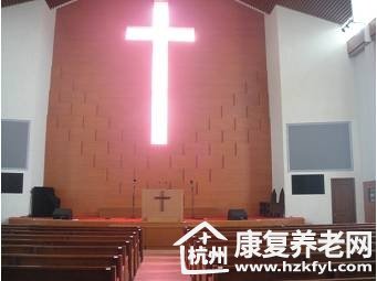 杭州市基督教敬老院位于杭州市丁桥镇的皋亭山风景区,66.45%的绿化率,采用花园式现代化建筑风格,全院占地16亩,设计床位406张,分单人间、双人间、套房及特护等。配备了一座现代化的多功能厅,用于主日崇拜及每日的灵修聚会。同时还开设了图书馆、活动室、书画室、健身房、种植园等,长者可以根据自己的兴趣爱好参加不同的兴 趣小组。根据基督教信仰特点,特别注重临终关怀和终极关怀,设置了临终关怀室和安息园,供主内长者临终和归天后使用。杭州市基督教协会特地创办了一家康复医院,有各类康复器材42件,康复病床20张。医院还专门配备了 一辆专用救护车,以备不时之需。以“护理+医疗”的养老模式,让长者不仅老有所养,也能病有所医。